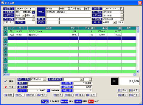 ・売上伝票入力画面から、売上伝票の